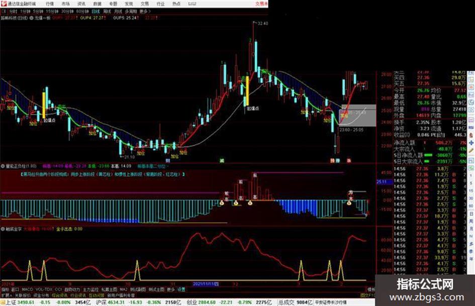 DRAWNUMBER_FIX(CURRBARSCOUNT=1 AND C/REF(C,1)>1.096,0.824,0.2,0,DJB),COLORGREEN; GUP5:(LLV(GUP3,2)+LLV(GUP3,4)+LLV(GUP3,8))/3,COLORWHITE; GUP6:=(LLV(GUP1,2)+LLV(GUP1,4)+LLV(GUP1,8))/3; {DRAWBAND(GUP1,RGB(155,50,50),GUP6,RGB(250,250,0));} IF((GUP1 <= REF(GUP1,1)),GUP1,DRAWNULL),COLORGREEN,LINETHICK3; IF((GUP1 >= REF(GUP1,1)),GUP1,DRAWNULL),COLORRED,LINETHICK3; STICKLINE(GUP4>GUP1,GUP4,GUP1,0,0),COLORBLUE; DRAWKLINE(H,O,L,C); DRAWTEXT(REF(GUP5,1)=REF(GUP1,1) AND GUP5<GUP1,L*0.99,'买进'),COLORRED; DRAWTEXT(REF(GUP6,1)=REF(GUP1,1) AND GUP6<GUP1,L*0.98,'加仓'),COLORYELLOW; DRAWTEXT(REF(GUP4,1)=REF(GUP1,1) AND GUP4>GUP1,H,'卖出'),COLORGREEN; ZT:=REF(C,1)*1.1-C<0.01 AND H=C; 突破:=CROSS(C,GUP4) AND ZT; DRAWTEXT(突破,L,'起爆点'); STICKLINE(突破,CLOSE,OPEN,3.2,0),COLOR0077FF; STICKLINE(突破,CLOSE,OPEN,2.5,0),COLOR0099FF; STICKLINE(突破,CLOSE,OPEN,1.9,0),COLOR00BBFF; STICKLINE(突破,CLOSE,OPEN,1.2,0),COLOR00DDFF; STICKLINE(突破,CLOSE,OPEN,0.3,0),COLOR00FFFF;