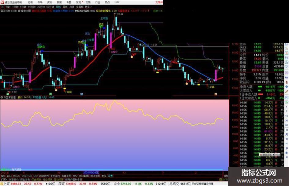 PE估值(元):IF(FINVALUE(1)<=0,0,PE估值1),COLORCYAN,LINETHICK2;
