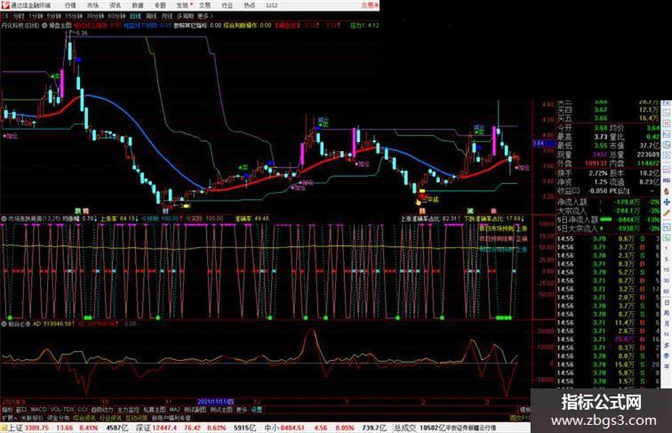 写了一个通达信版的"明日市场涨跌预测"指标, 以"平均股价"指数涨跌幅及"涨跌家数"指数的上涨家数为参考依据, 参见截图: