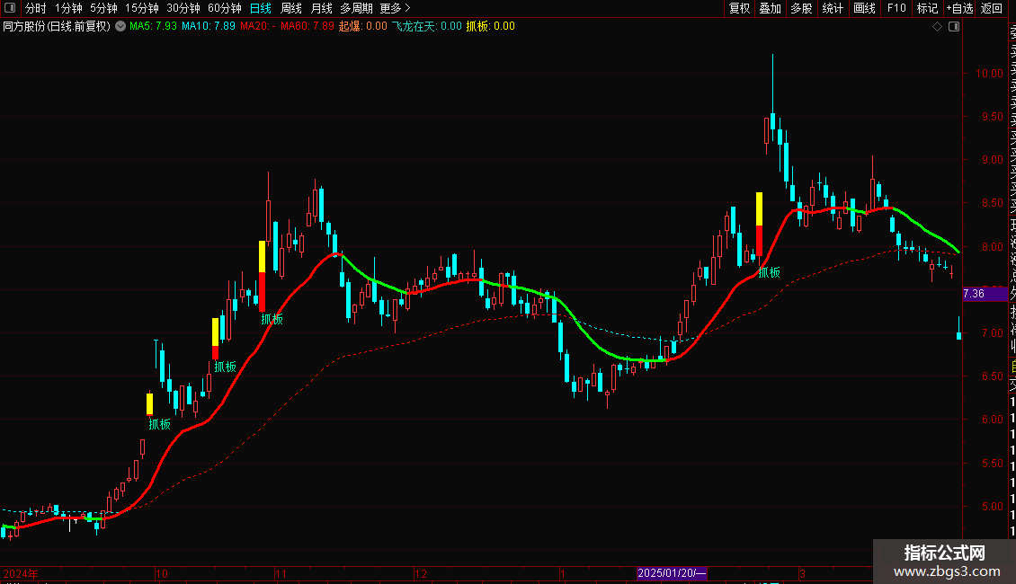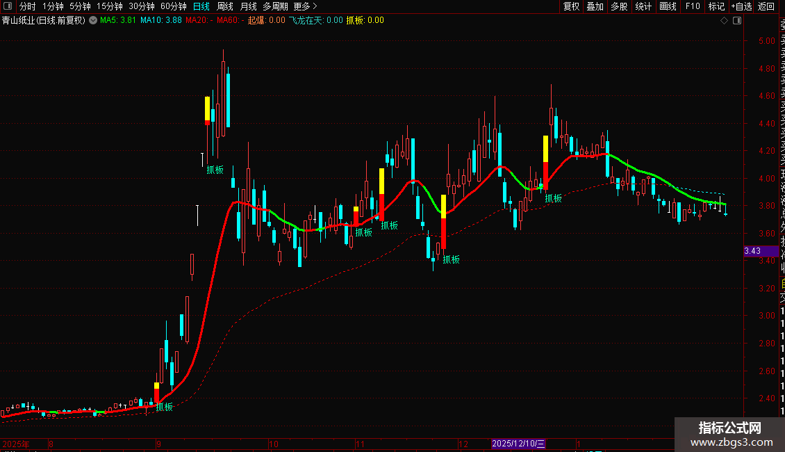 DRAWTEXT(ZB AND ZJC3 ,L*0.99,'抓板'),COLORAFFF00;