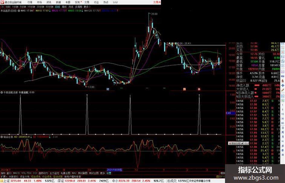 QB:="kdj.J"-REF("kdJ.J",1)>30 AND C/REF(C,1)>1.043 AND "macd.MacD">0 AND "MACD.DEA">0;