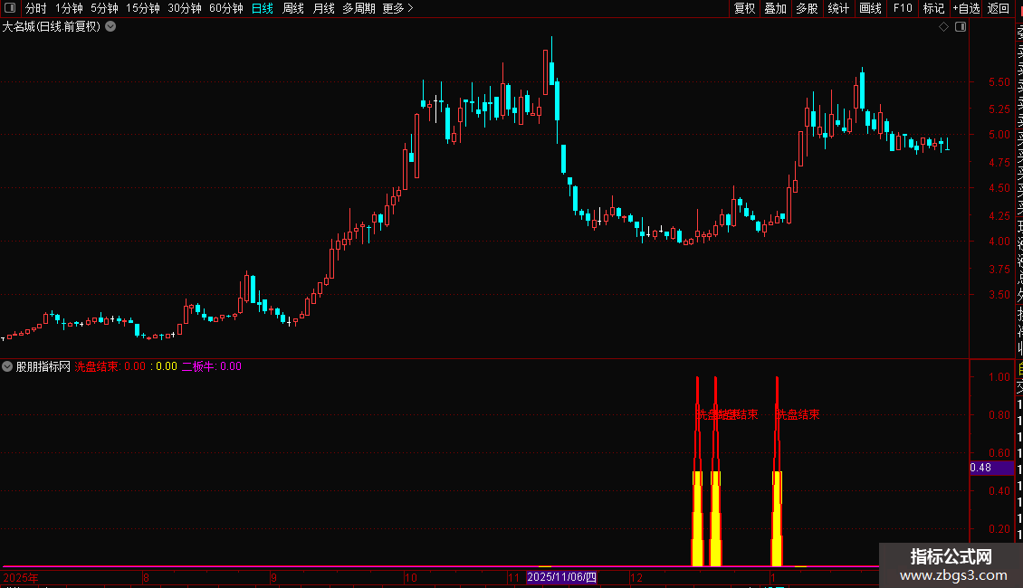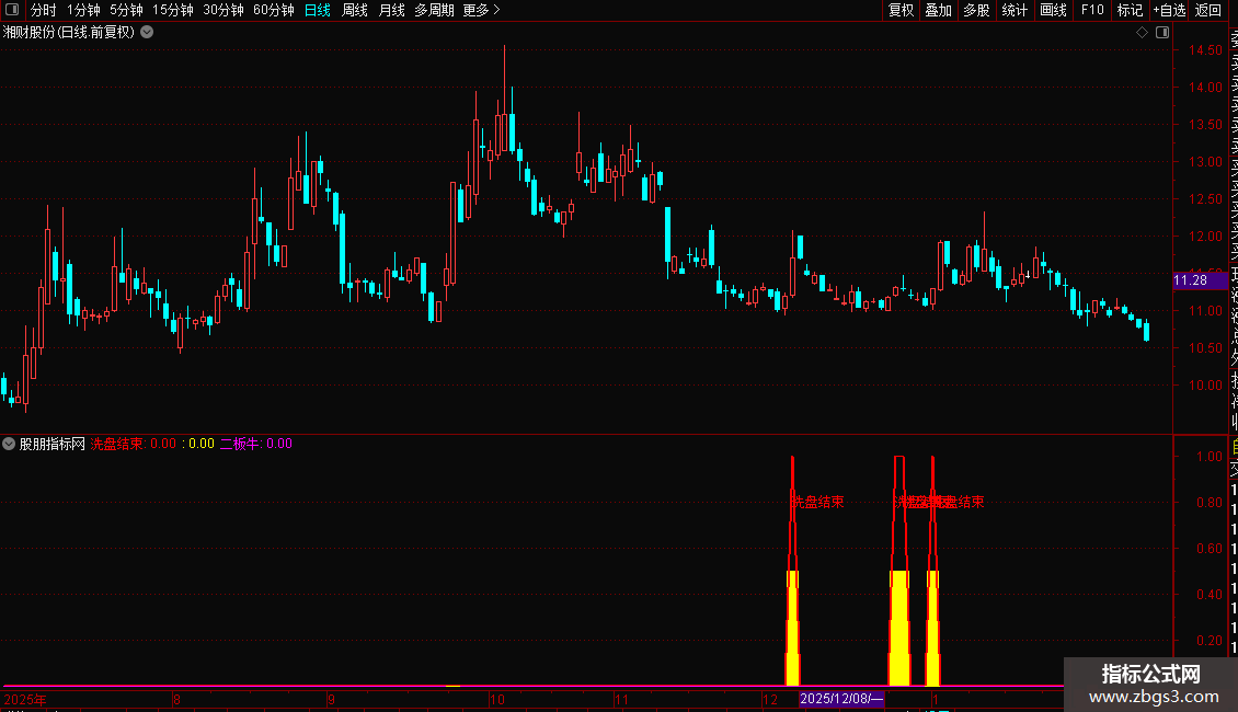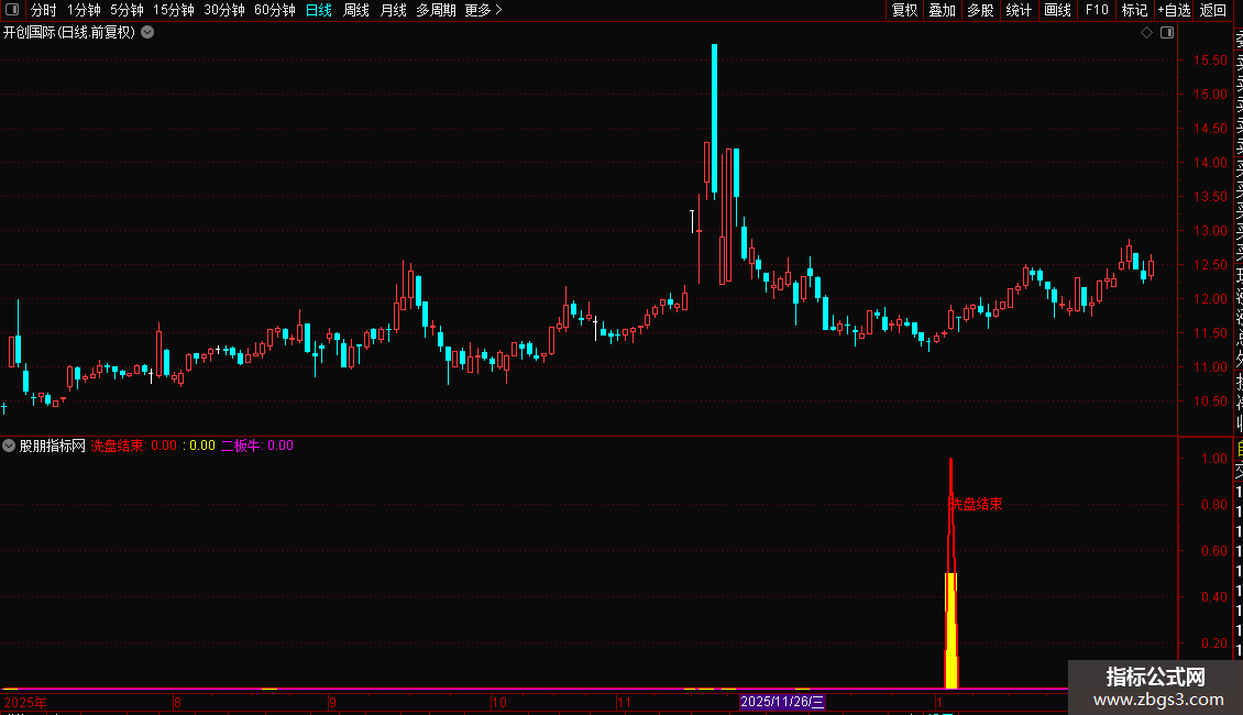 洗盘结束:IF(VAR6,1,0),COLORRED,LINETHICK2;