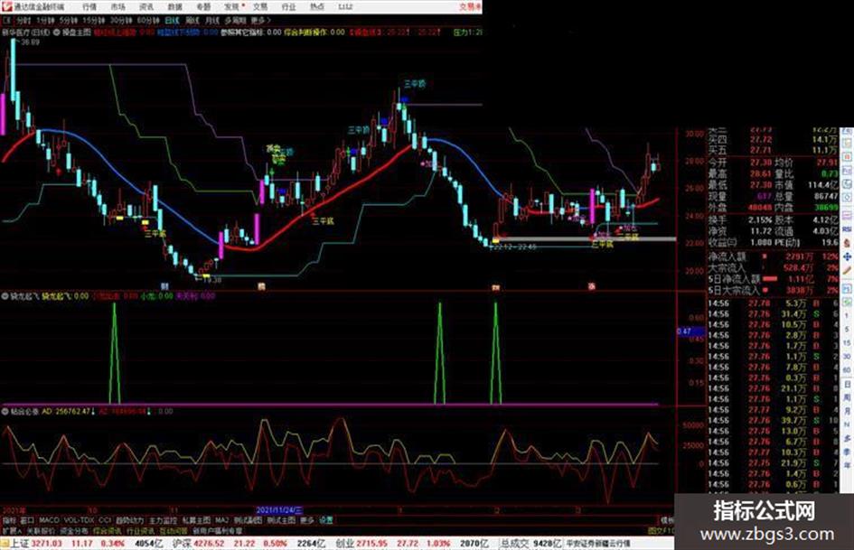 天天利:IF(X_5<=(-0.45) AND X_5>=(-0.48) AND COUNT(X_5<REF(X_5,1),2)=2 OR (X_5<=(-0.48) AND COUNT(X_5<REF(X_5,1),3)=3) AND CLOSE>OPEN AND REF(COUNT(CLOSE<OPEN,2)=2,1) AND MA(VOL,12)<MA(VOL,24),0.5,0),COLORMAGENTA,LINETHICK2;
