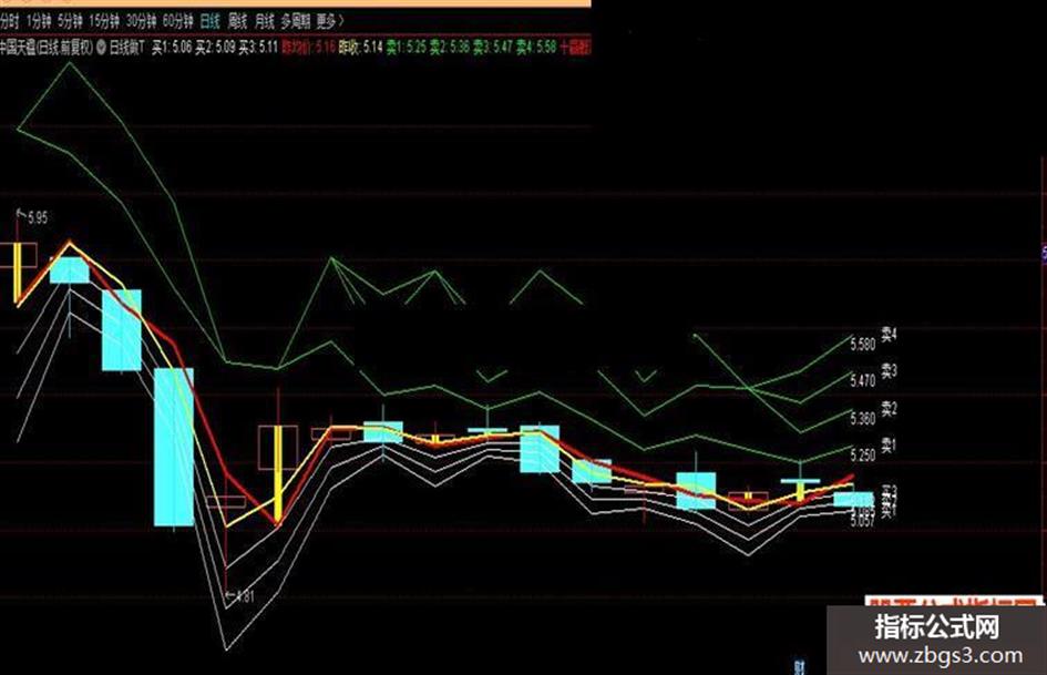 卖4:IF((REF(C,1)+KK*4)<1.1*REF(C,1),REF(C,1)+KK*4,卖3),COLORGREEN;