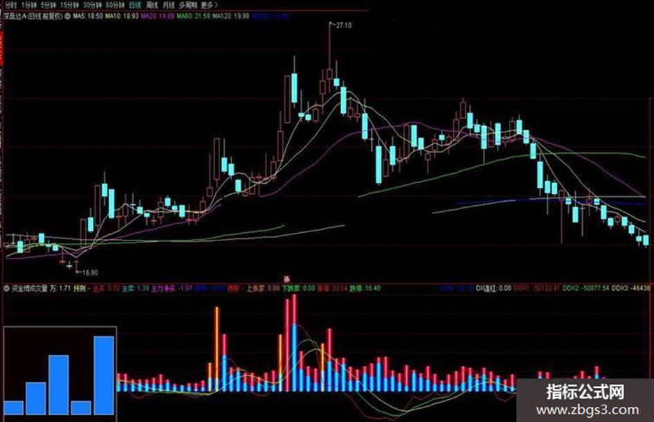 STICKLINE(主动卖<=0,0,-主动卖,0.2,0),COLORCYAN;