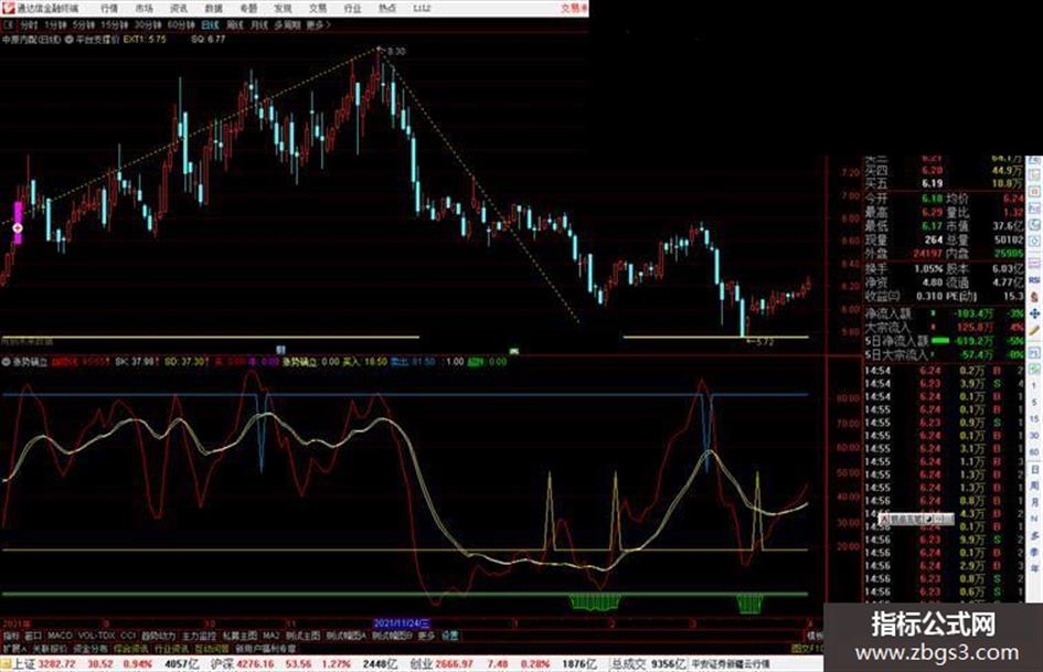 过峰1:STICKLINE( 过峰,C,O,5,0)COLORFF00FF;