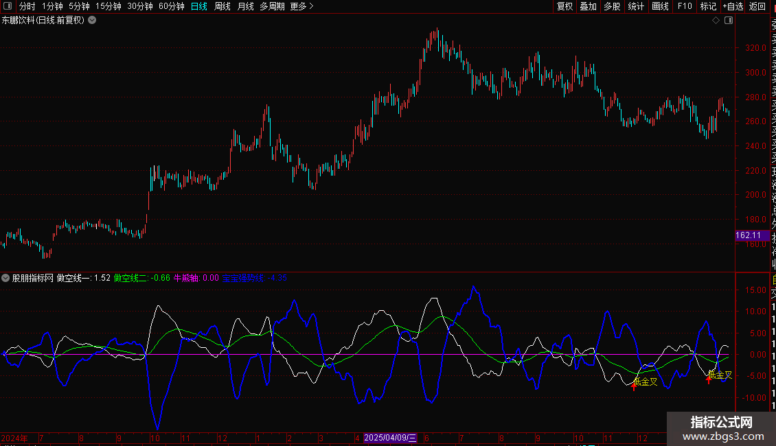 宝宝强势线:2*(做空线二-做空线一),,COLORBLUE,LINETHICK2;