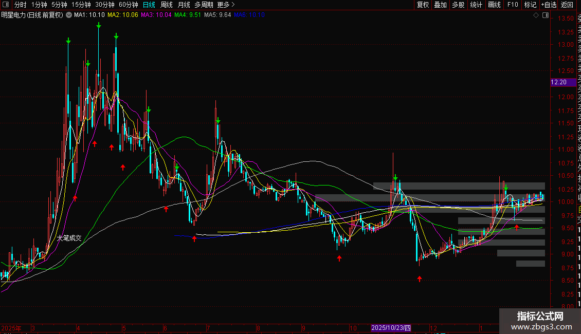 DRAWTEXT(VAR1C AND COUNT(VAR1C,30)=1,LOW*0.95,'大笔成交') COLORWHITE;