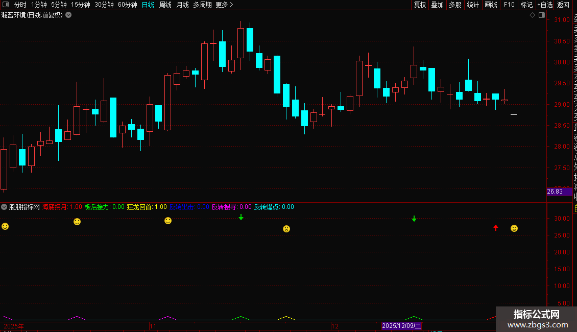 反转爆点(青色信号,图标6):当CCI从大于-250下穿至-250以下时触发,显示在K线最低价下方2%位置。