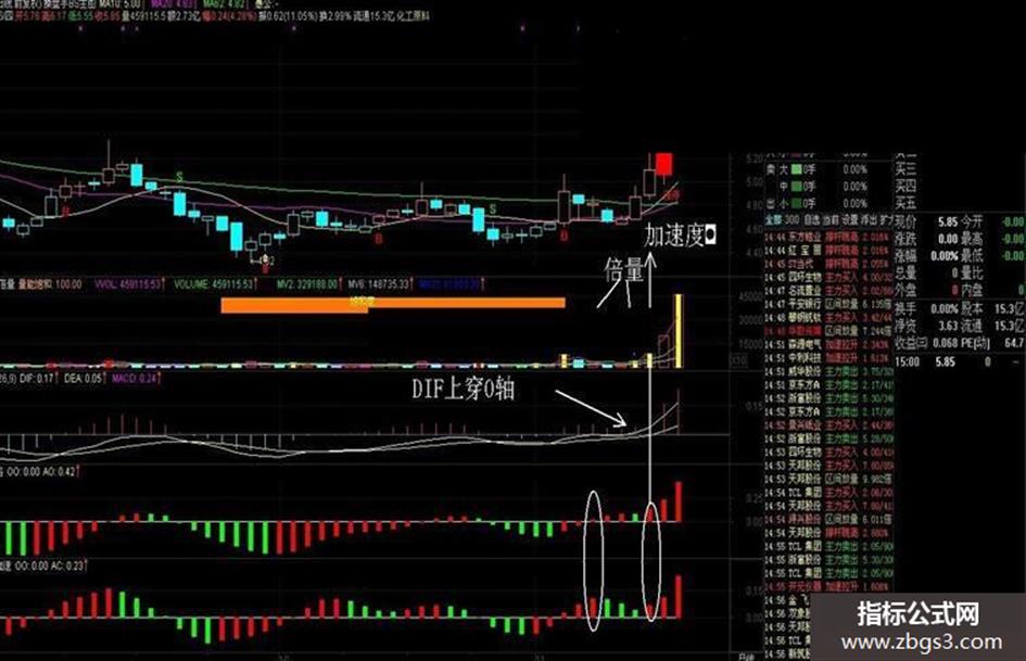 2、最新的柱线从上向下穿越零轴线时就产生了穿越卖出信号;
