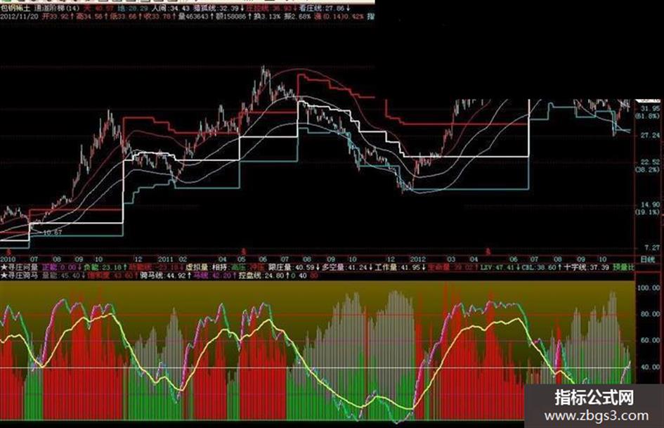 一周来对前期的一主三副进行了加工整理,这里先贴出主图中的通道阶梯源码,如果有的感到线条太多,可以进行美化处理,因为考虑到指标的通用性,这里只把指标的基本线条放出,如果有的通达信版本过低,WMA可能通过不了,就将它改为MA效果有所差别。用法说明:趋势看通道,强弱看阶梯。庄拉线既是追涨线也是止赢线,看庄线既是回调支撑线也是止损线;如果出现股价几乎同时跌破庄拉线和天线(此时天线出现垂直上升状)牛市行情结束的概率大于80%。另外,有的认为HHV和LLV会漂移,但是这里是进行了向前赋值的处理,是不会漂移的。其它的详细用法可自己体会理解。