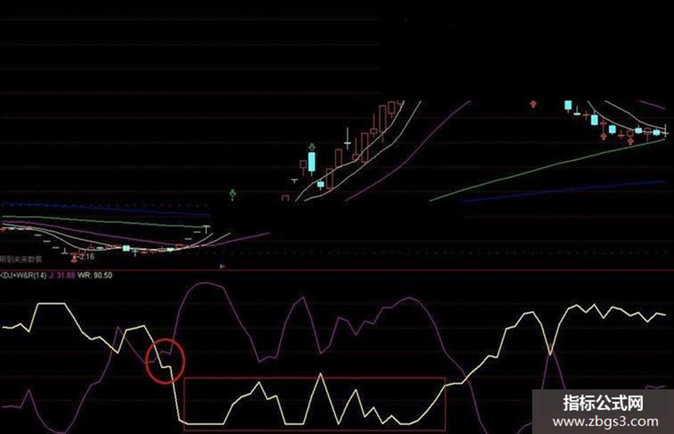 DRAWTEXT_FIX(1,0.01,0.95,0,'KDJ有效上穿W&R,W&R<20考虑买入,上升趋势中若W&R>20,但在三天之内回到20以下有效'),COLORMAGENTA;