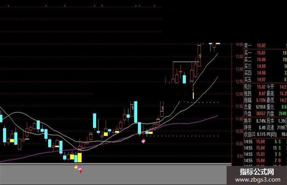 单枪出击选股:{无未来}DRAWICON((VAR32 AND (VAR29 OR VAR30) AND NOT(VAR33) AND L<支撑线),L-0.4,27)COLORLIMAGENTA;