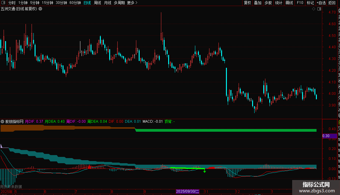 月条件:=月DIF>0 AND 月DEA< 0.15 AND 周DIF>=REF(周DIF,5);