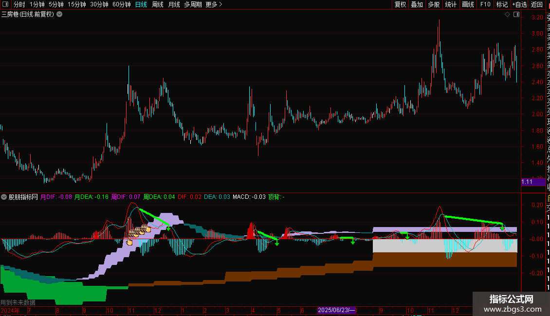 DRAWBAND(月DIF,RGB(110,50,0),月DEA,RGB(0,160,50));