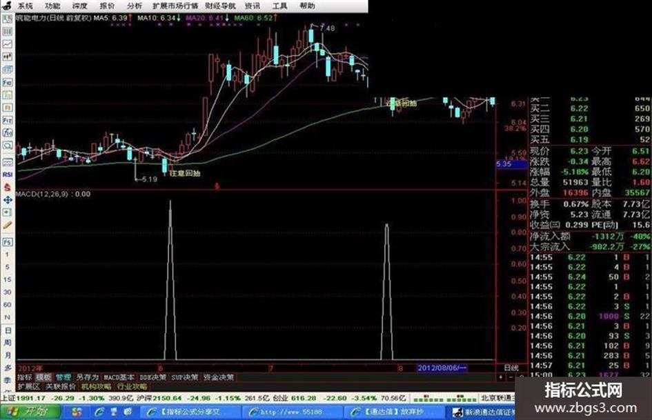 一般来说,MACD指标大家的用法差不多,金叉死叉,红柱绿柱,本人经过多日观察,发现一个很有意思的东西。做一个简单指标叫做“注意回抽”,大概翻了一些股,此指标成功的比例反倒不低,如果配合其它指标,比如KDJ、缩量等待,有时收获不菲。当然了,它不可能解决一切问题。
