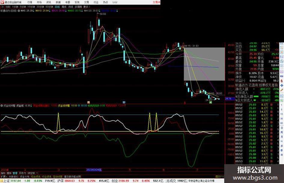 资金线预警: IF(crOSS(资金线,资金线低位确认),100,10),LINETHICK2,COLORYELLOW;