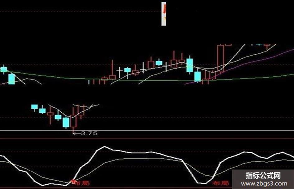 其特点是:两条线,两种布局介入点。简单明了,直观易懂。无未来函数,适合做短线。