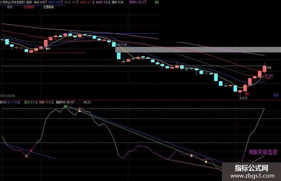 通达信经典指标RSI突破选股公式