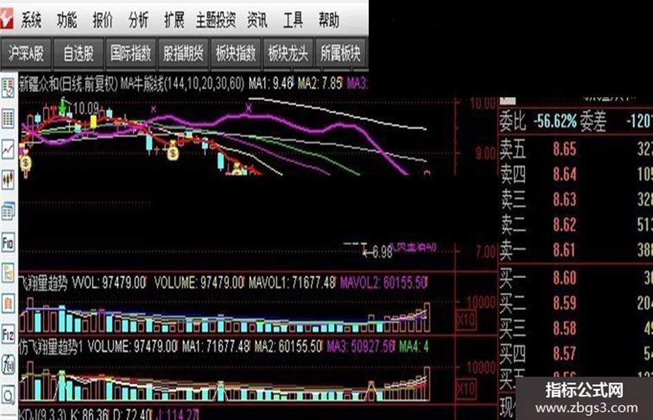 仿飞翔量趋势与加密飞翔量趋势指标各量线一至;