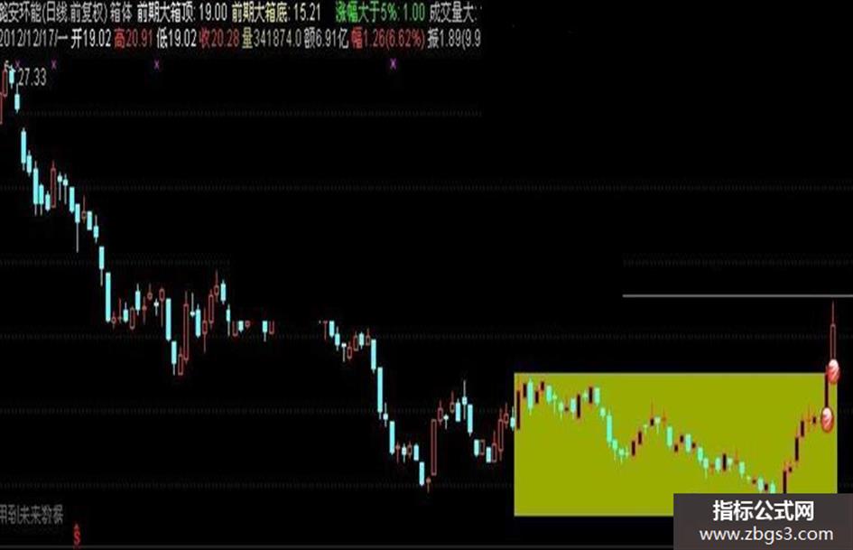 (1)过去5天之内有一根涨幅大于5%的大阳线突破前期大箱体的最高价;