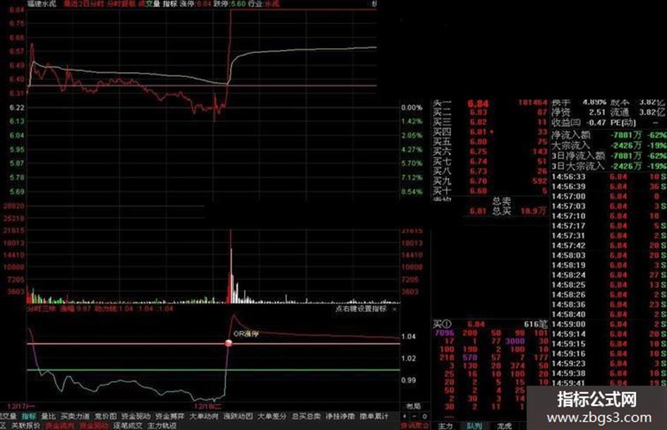 当满足条件净流上穿0时,在0位置书写文字,画白色