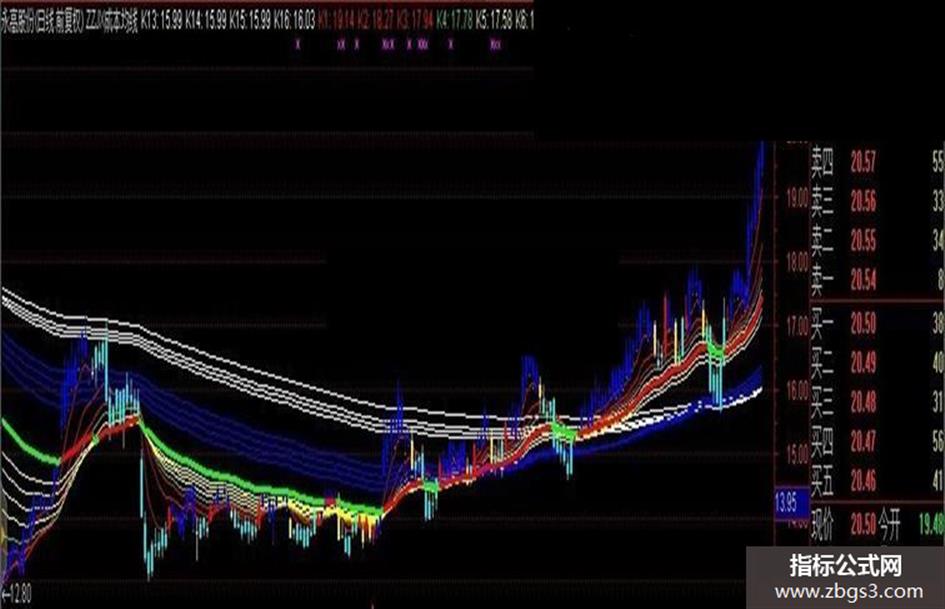 这是我最喜欢的一个看K线趋势的公式,类似系统带的均线,参数我在原版公式上做过修改,为了适应熊市+牛市。感觉更好灵敏些。原版参数天数太大。白色或蓝色渐渐拟合走平上翘是关键,蓝色可以看成是60日均线。蓝色线渐渐走平并渐渐融合成一根线时代表上涨看好。白色线蓝色线都渐渐走平上翘的票可谓强势票。具体各位喜欢的去琢磨吧。白色线可看成250日线。建议一次看的K线多显示些,均线的失真才会小,再缩小K线局部看,公式只计算软件读出来的k线。这是通达信软件的特色。最后祝各位好运。新手不可盲目亲信各种公式里的买卖点。牛市你也许运气好。熊市那些买卖点可以让你血本无归