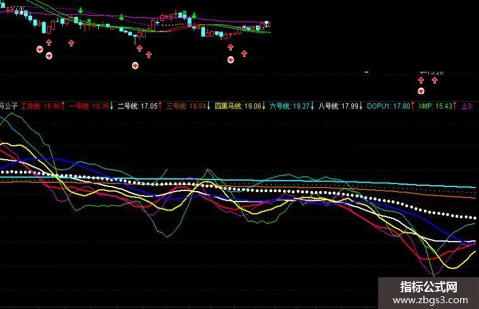四黑码线:EMA(CLOSE,453),POINTDOT,LINETHICK2,COLOR00FFFF;