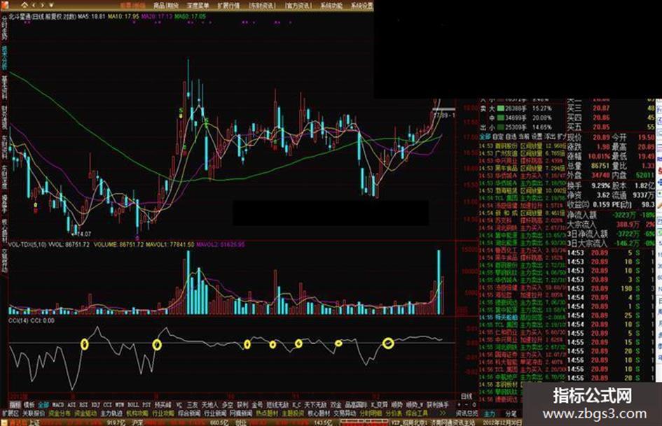 当满足条件净流<1日前的净流AND净流>0时,在0和净流位置之间画柱状线,宽度为3,0不为0则画空心柱.,COLOR00BBBB