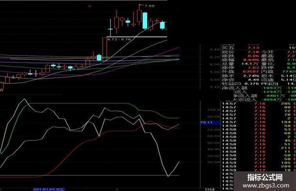 当满足条件净流<1日前的净流AND净流>0时,在0和净流位置之间画柱状线,宽度为3,0不为0则画空心柱.,COLOR00BBBB