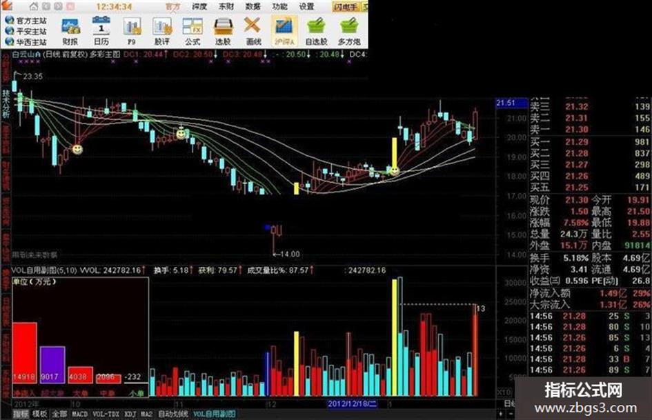 卖盘:=IF(CLOSE>OPEN,0-AA*((HIGH-CLOSE)+(OPEN-LOW)),IF(CLOSE<OPEN,0-AA*(HIGH-LOW),0-VOL /2));