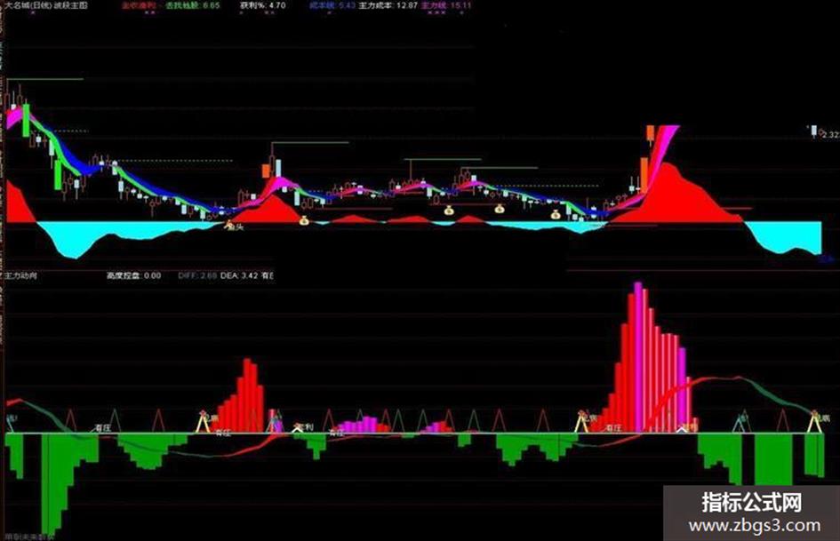 主力动向,粉红为高度控盘