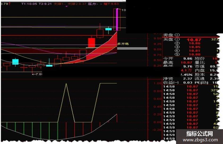 当满足条件净流>0时,在0和净流位置之间画柱状线,宽度为0.5,0不为0则画空心柱.,COLORCC66FF