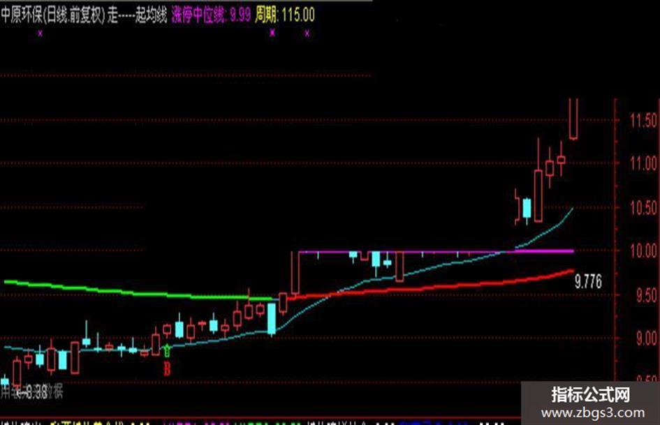 涨停中位线:DRAWLINE(DF,Z,REF(DF,1),REF(Z,1),1),COLORMAGENTA LINETHICK2;
