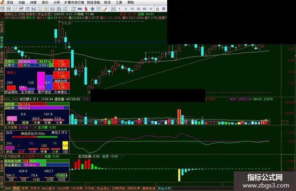 段时间看到坛子里朋友们对资金看盘公式指标大感兴趣,自已在网上找了一个《看盘加强板的》的指标,仿着坛子里朋友们发的图片,组成了以下一主三副的四个资金模块。喜欢花哨画面,对资金感兴趣的朋友拿去吧,编辑公式水平不高,对通达信的L2资金也不太清楚。所以难出错的地方,不对的欢迎指导。