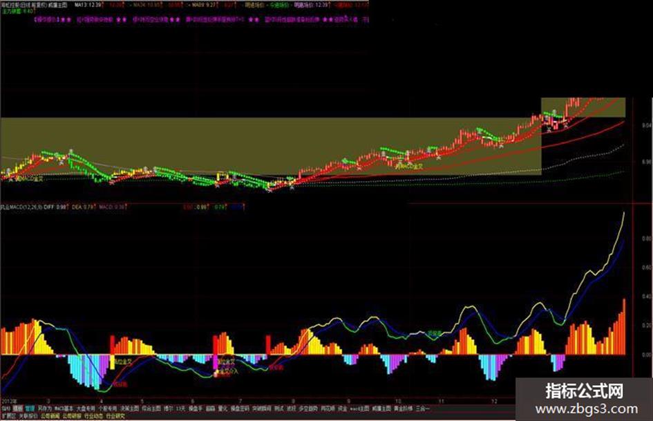 STICKLINE(MACD<=REF(MACD,1)AND MACD<0,0,MACD,0.55 ,0 ),COLORFFFF55;