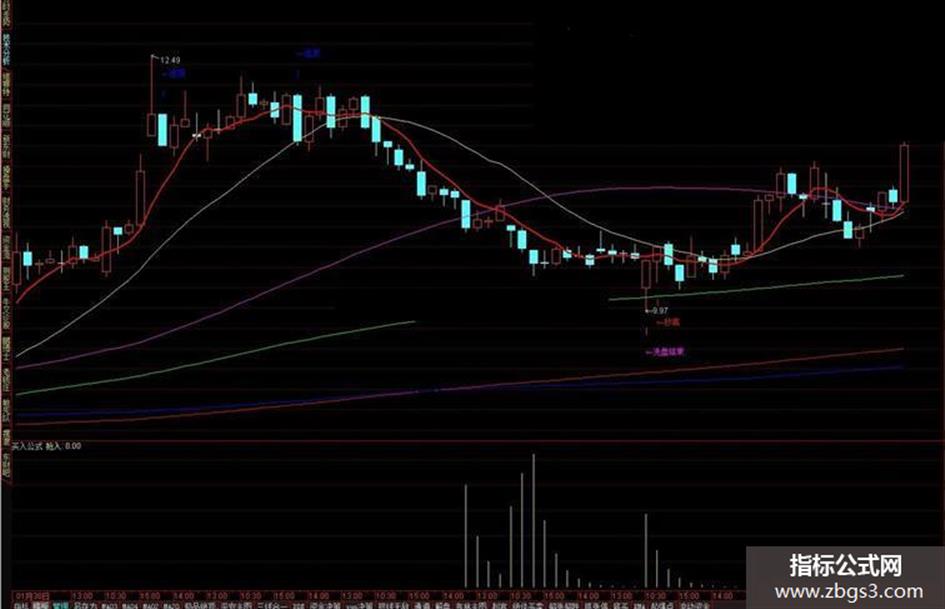 买入公式没有未来,配合有道均线使用.指标出现黄柱子,探明主力已经进场,发现踪迹.柱子越高越好,呵呵