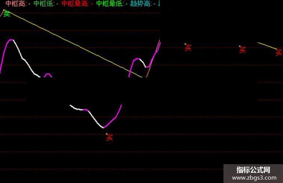 中枢最高:PLOYLINE(DISP=2,REF(ZSH,BARSLAST(TJ8))),POINTDOT,COLORRED;