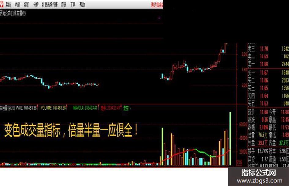 走多:IF(MAVOL4>=REF(MAVOL4,1),MAVOL4,DRAWNULL),LINETHICK2,COLORRED;