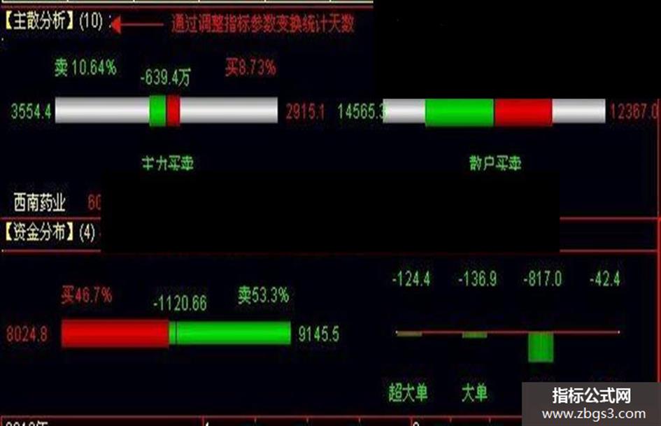 “精美制作立体显示资金系列3指标 ”中只能显示当日资金流向分布,现通过“相应替换”