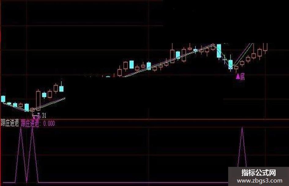 RSV:=(((CLOSE - LLV(LOW,9)) / (HHV(HIGH,9) - LLV(LOW,9))) * 100); K:=SMA(RSV,3,1); D:=SMA(K,3,1); J:=3*K-2*D; 跟庄进退: IF(CROSS(J,3),1,0),COLORFF00FF;