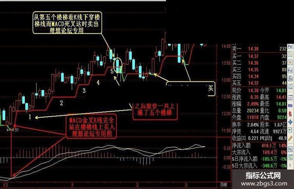 一、配合副图MACD底部金叉,K线站上第一个楼梯线买入。