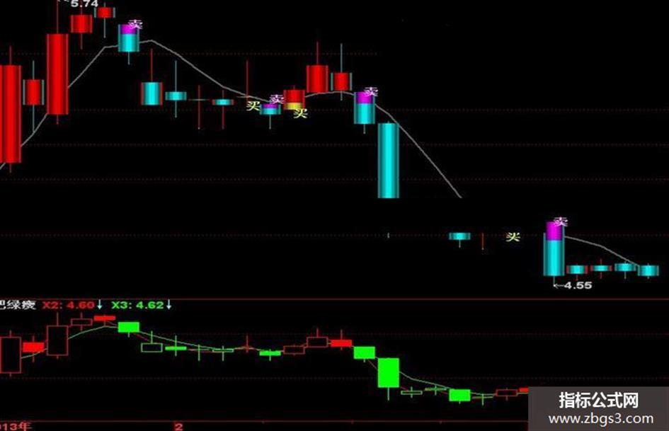STICKLINE((CLOSE>OPEN) AND (X2<=X3) AND SJTJ,CLOSE,OPEN,3.2,2)COLORGREEN;