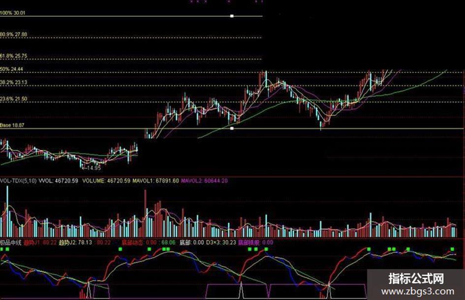 底部动态:EMA(IF(L<= LLV(L,40),SMA(ABS(L-REF(L,1)),40,1)/SMA(MAX(L-REF(L,1),0),40,1),0),3)*10,STICK,COLORRED,LINETHICK2;