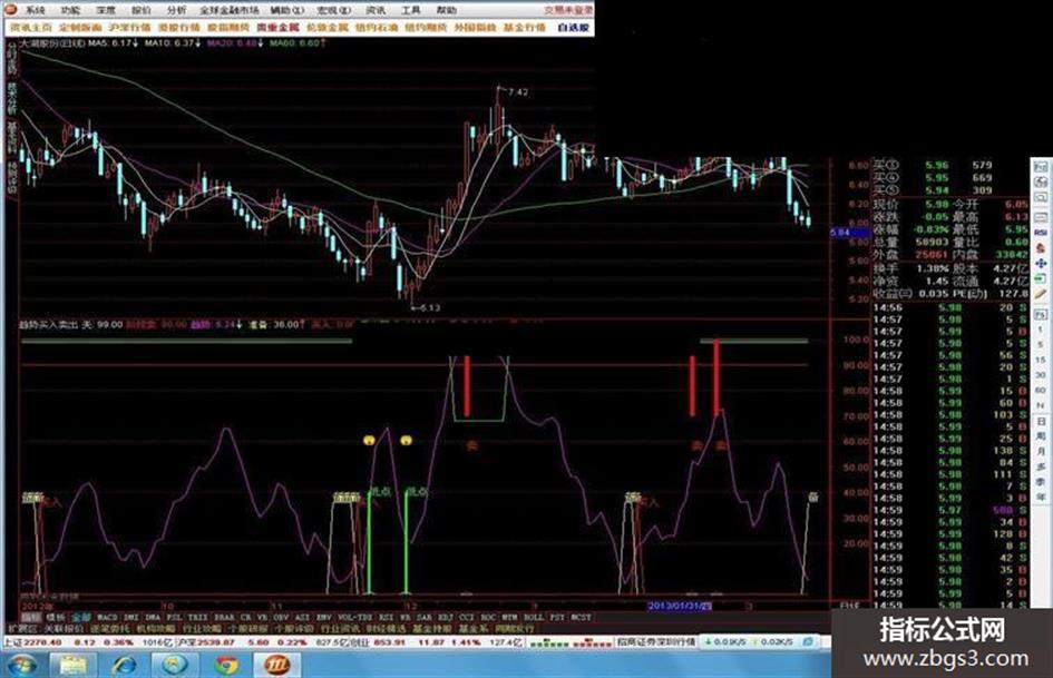 自用的一个副图指标,趋势买入卖出,绝对必杀的提示指标,无未来。发现买入信号后,第二天以上一天收盘价以下价位买进,在未来一周内绝对有5%-10%收益,希望大家能受益。天:99