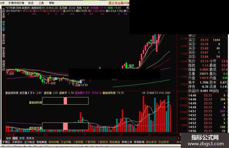 如果股价在一定时间内,一直做平台盘整,此时价格突然向上突破,并出现量能饱和,我们视为饱和的底部区域,是股价即将启动的信号; 如果股价不断创出新高,处于持续上涨的通道中,随后出现量能饱和,我们视为饱和的头部区域,是股价即将卖出的信号.
