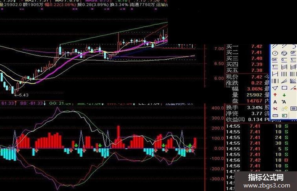 众赢BBD:EMA(总0,3)/SUM(VOL,5)*600,LINETHICK;