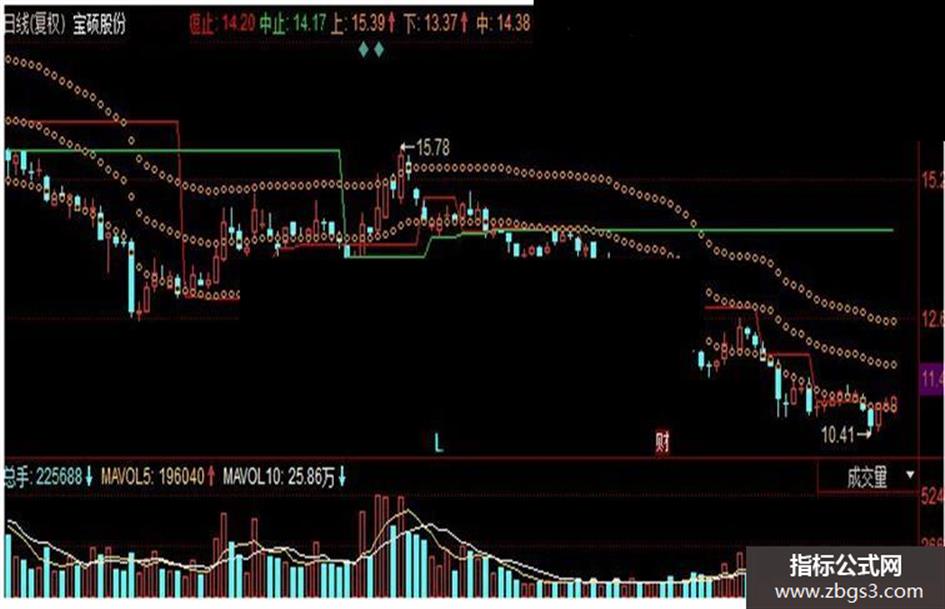 本指标的用法与boll线类似,股价在通道下轨运行时,表示下降趋势,在上轨运行时表示上升趋势。