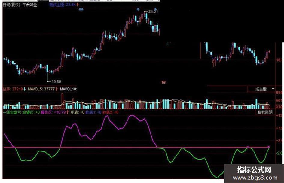 输出观望区:如果BIAS3<0,返回BIAS3,否则返回0,COLOR00EE00,线宽为2