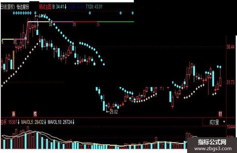 B:IF(CLOSE<SAR(4,2,20),SAR(4,2,20),DRAWNULL),CIRCLEDOT,colorcyan;
